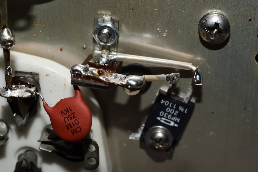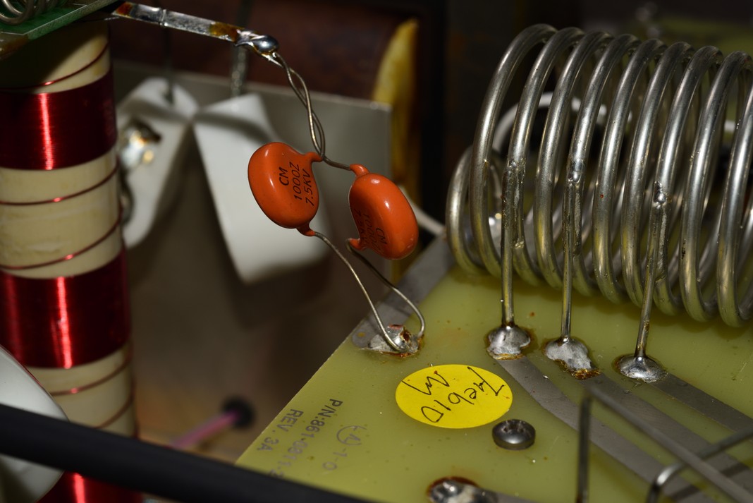21.) Resolder the two 7.5kv capacitors to the strap connecting the parasitic board.