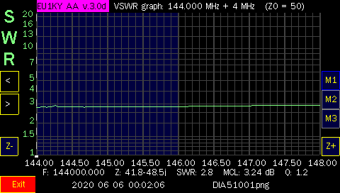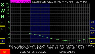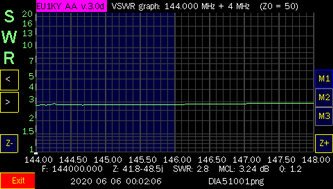 The three antennas I have posted test results for are, the stock antenna, the RH77CA and the SRJ77CA. HT antennas are effected by things that are around them so, it is best to take readings in as much free space as possible. Everything effects them even, your body will have an effect on their actual readings so, keep this in mind when viewing the results below. Once, I was ready to analyze each band, I held the analyzer up over my head into, as much free space as possible.