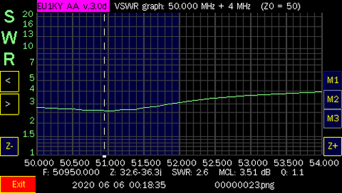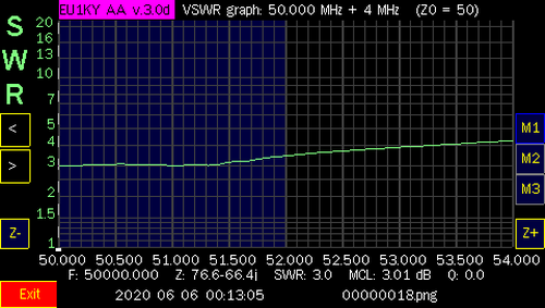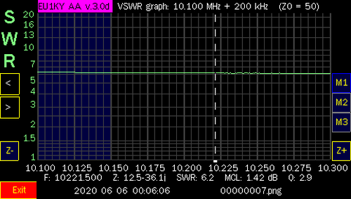 6 meters @ 5' Choke @ 0' from balun | 6 meters @ 15' Choke @ 10' from balun | ||