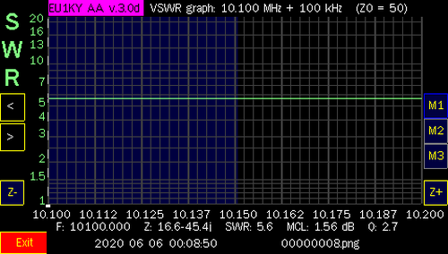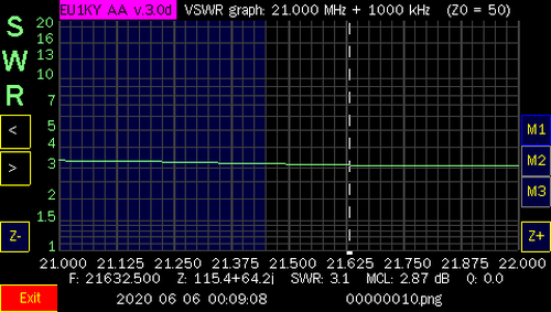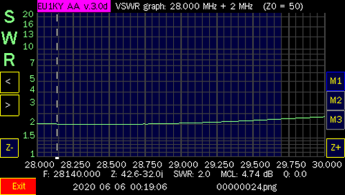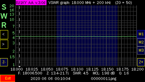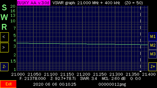 NOTE: After I tested all the bands, I did make some contacts with only, 100 watts and the internal tuner of the Icom IC-7300. I only used 20 meters on both days. On Jan. 1st, I worked Julie, KB6DRB, in Riverside, CA (2225 Miles). and on Jan. 2nd, I worked Scot, N6ZT, in Los Angeles, CA (2275 Miles). I also made contacts in NY, AR and OH. Needless to say, the antenna works and can be matched with an antenna tuner. I used an MFJ-969 although, a little touchy (tight) to tune, It did get me on other bands and I was able to make other contacts but, not as far as Califonia. Also, I was able to make some contacts on two, local repeaters, on the 2 Meter band, using my BaoFeng F8-HP walkie talkie, connected to the windom, as well! When, I have a chance to get more screen shots, at heights up above 15', I will add them to this page.