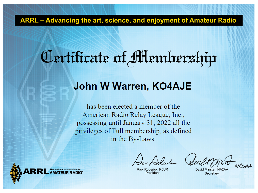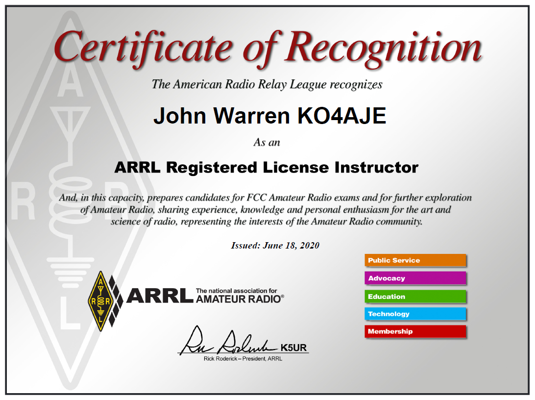 KO4AJE - General ticket obtained Mar. 19, 2020