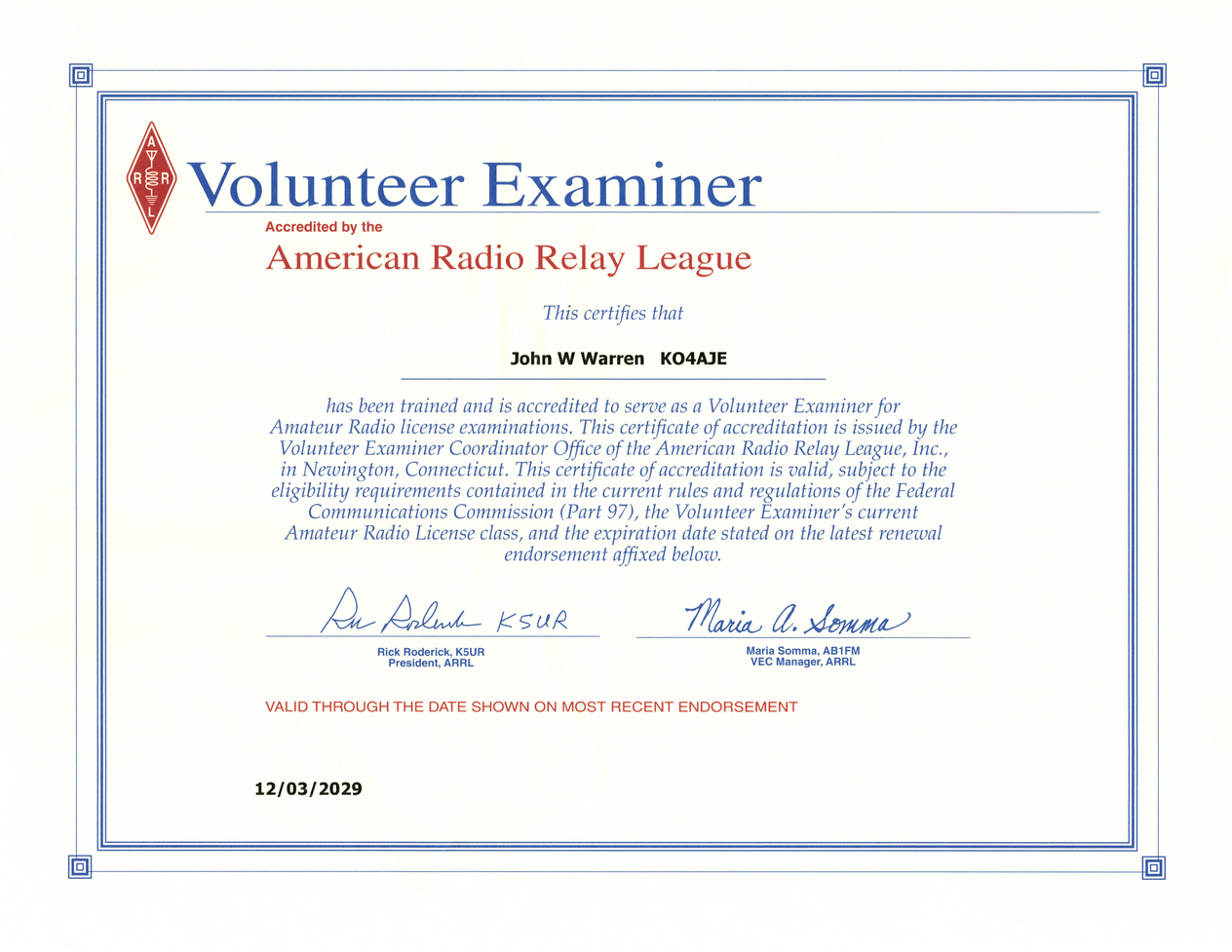 KO4AJE - Technician ticket obtain Nov. 3, 2019.