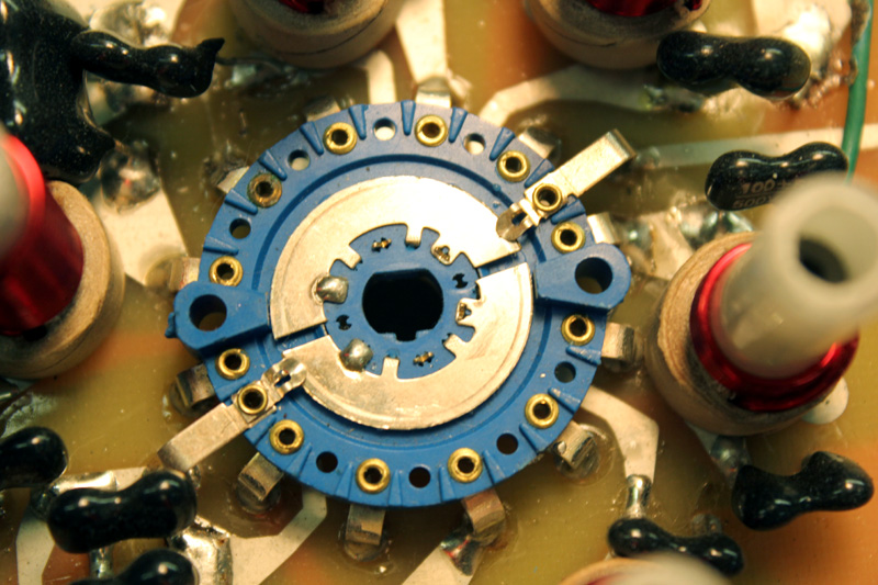 22.) Now is a good time to check the alignment of the rear band switch. While in the 160 meter position, the commutator gaps, align with the ten  meter contact eyelets.