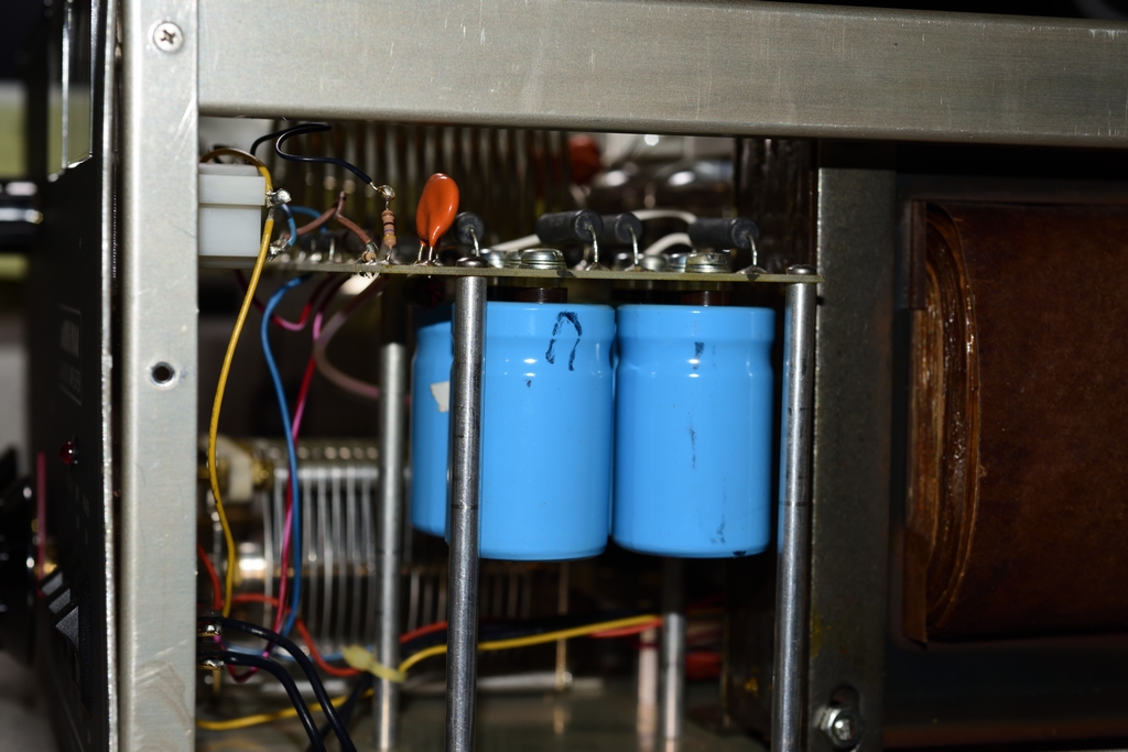 2.) Once voltage is at zero and the unit has set for a while, it should be safe to remove the cover. Do not touch anything inside the unit until, you have checked with a voltage meter, that no voltage is present. Check the main capacitors with the positive meter probe and the negative probe attached to ground. Make very sure no voltage is present inside the amplifier.
