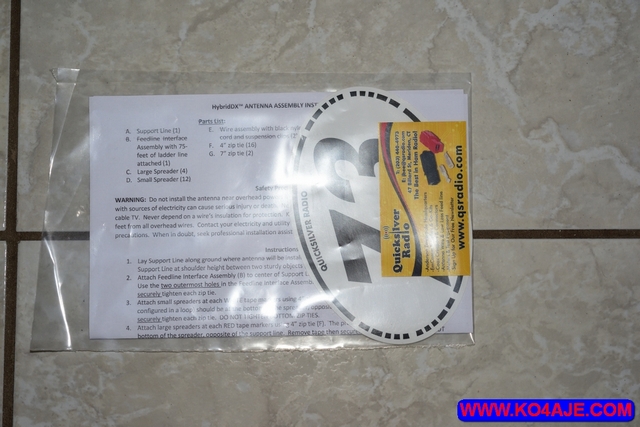 The bag with the instructions also came with a business card and a 73's sticker from Quicksilver Radio.