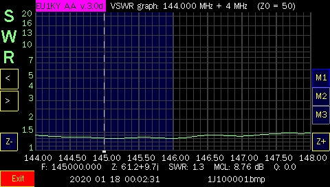 I got his antenna ($36.00) and about 6 snap on ferrite beads ($18.00), for common mode current. The antenna rediates very well in an omni-directional pattern. When I first mounted the J-pole it was on a push up pole at 17 feet. Below are graphs made with a Mini600 antenna analyzer for 2 meter and 70cm at 17' and 25' fo RG-8X coax with Amphonal PL-259 connectors.