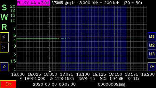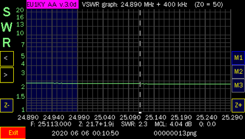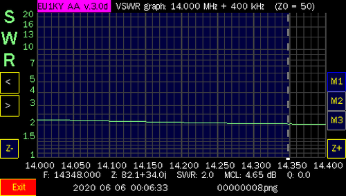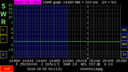 NOTE: After I tested all the bands, I did make some contacts with only, 100 watts and the internal tuner of the Icom IC-7300. I only used 20 meters on both days. On Jan. 1st, I worked Julie, KB6DRB, in Riverside, CA (2225 Miles). and on Jan. 2nd, I worked Scot, N6ZT, in Los Angeles, CA (2275 Miles). I also made contacts in NY, AR and OH. Needless to say, the antenna works and can be matched with an antenna tuner. I used an MFJ-969 although, a little touchy (tight) to tune, It did get me on other bands and I was able to make other contacts but, not as far as Califonia. Also, I was able to make some contacts on two, local repeaters, on the 2 Meter band, using my BaoFeng F8-HP walkie talkie, connected to the windom, as well! When, I have a chance to get more screen shots, at heights up above 15', I will add them to this page.